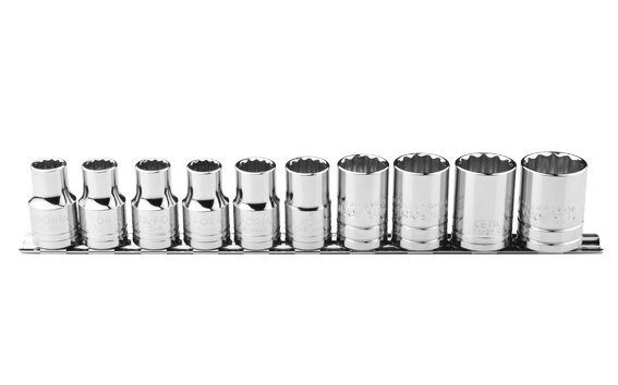 Ceta Form Sockets are very high quality, using a compact design, precision fit to nuts and bolts with knurls to aid non-slip gripping and a female square for perfect fit to ratcheting handle. 10 Piece 1/4" Drive 12-Point Socket Set - SAE are manufactured from high quality steel and meet all standards and tolerances.