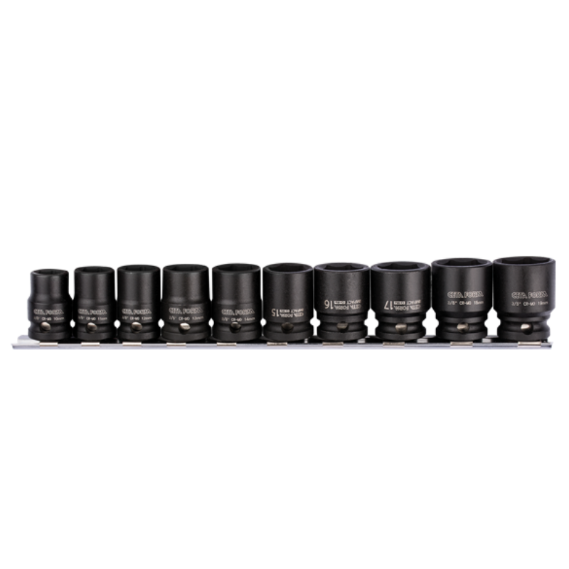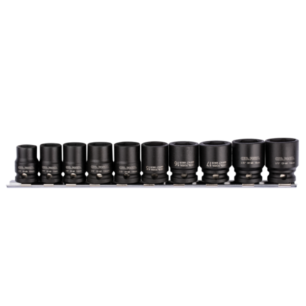 Ceta Form Impact sockets are manufactured from Chrome-Vanadium-Molybdenum steel in a thicker wall profile. Therefore, they are fit for use with high torque air tools. 10 Piece 3/8″ Drive 6-Point Impact Socket Set are available in key sizes.
