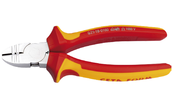 Ceta Form manufacture a broad range of 1000v insulated electrical tools including pliers. C-Plus VDE pliers feature Larger teeth for holding circular objects i.e. screws, pipes, etc. High performance cutting edges, extra hardened by special Ceta Form process. Plastic components resistant to all petroleum products. 2K Handle technology for high torque transmission with less stress. Every tool is individually tested in a water bath at 10.000 Volts according to DIN EN 60900, IEC 900 norms. Ceta Form 160 mm 1000V Combi Cutter / Stripper (VDE). Chrome plated with soft-grip handles. EN 60900, VDE 0682 Teil 201. Suitable for cutting soft wire, stripping holes for 1.5 and 2.5 mm² single conductors.