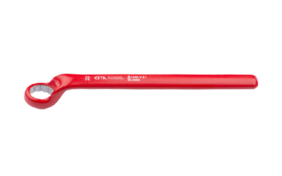 Ceta Form manufacture a broad range of 1000v insulated electrical tools including a new range of tools for the ever-increasing hybrid and eletric vehicle sector. Every tool is individually tested in a water bath at 10.000 Volts according to DIN EN 60900, IEC 900 norms. Ceta Form 1000v Ring End Wrenches (VDE). Featuring injection molded 2-layer plastic for safety. EN 60900, VDE 0682 Teil 201. 75° deep offset ring end.