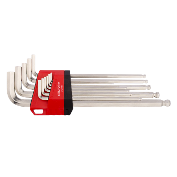 Ceta Form Hex and TORX L Keys. A comprehenisve range of hex and TORX L keys in industrial quality to suit every application. Colour coded clips for ease of selection. 12 Piece Ball End Hexagon L Key Set (Long Arm) are manufactured from high quality steel and meet all standards and tolerances.