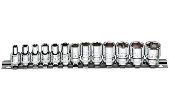 Ceta Form Sockets are very high quality, using a compact design, precision fit to nuts and bolts with knurls to aid non-slip gripping and a female square for perfect fit to ratcheting handle. 13 Piece 1/4" Drive 6-Point Socket Set are manufactured from high quality steel and meet all standards and tolerances.