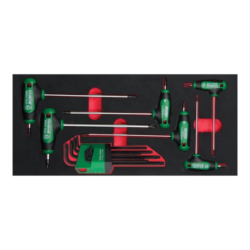 Ceta Form Tool Modules offer traceability and efficiency at its best. The 14 Piece T-Handle and L TORX Key Set (in EVA) contains 2 sets of keys, in Torx sizing.