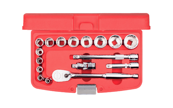 Ceta Form Socket Sets are offered in a HDPE molded case to withstand knocks, drops and variations in temperature. 17 Piece 3/8″ Drive 12-Point Socket Set – SAE comprise the most popular and useful sizes of sockets with a ratchet and all the necessary accessories.