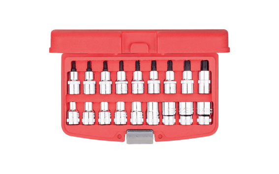 Ceta Form Socket Sets are offered in a HDPE molded case to withstand knocks, drops and variations in temperature. 18 Piece 1/2" TORX Socket Set comprise the most popular and useful sizes of sockets with a ratchet and all the necessary accessories.
