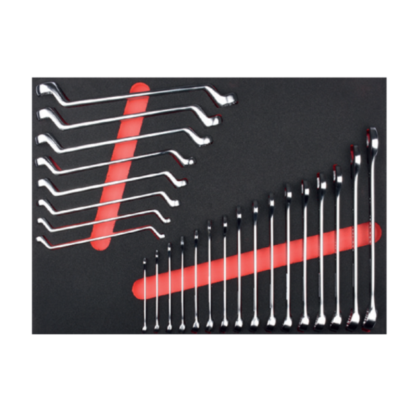 Ceta Form Tool Modules offer traceability and efficiency at its best. The 24 Piece Combination & Double Ring End Wrench Set (in EVA) features all the most popular sizes of these very useful wrenches.