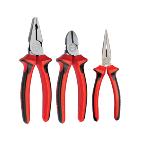 3 Piece Pliers Set feature pliers with polished finish and soft-grip handles in a box set.
