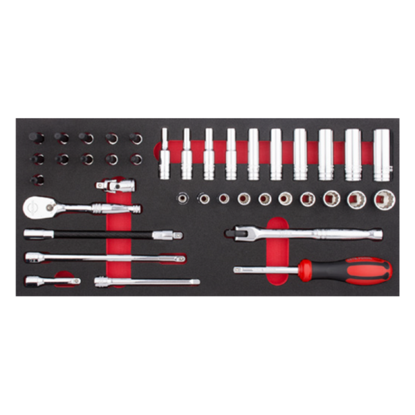 Ceta Form Tool Modules offer traceability and efficiency at its best. The 39 Piece 1/4” Drive 12-Point Socket Set (in EVA) is a useful addition to any tool kit, featuring key sizes of 1/4″ sockets, a ratchet and accessories, in imperial sizing.