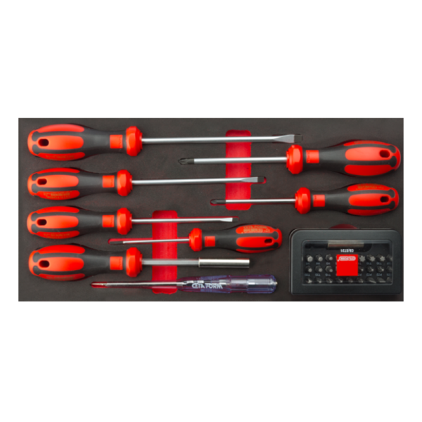 Ceta Form Tool Modules offer traceability and efficiency at its best. The 39 Piece C-PLUS Slotted/PZ Screwdriver and Bit Set (in EVA) is a useful addition to any tool kit, featuring key sizes of soft-grip screwdrivers and a handy bit set.