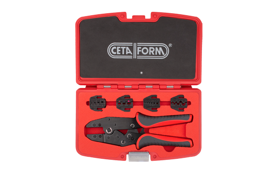 Ceta Form crimping tools for a wide variety of crimping applications, such as non-insulated and insulated terminals, connectors & lugs. Ceta Form 4 Piece Crimping Pliers Set. 4 interchangable crimping dies and a high quality ratchet crimping tool in a kit. Quick and effortless change of crimping dies without the need for an additional tool.