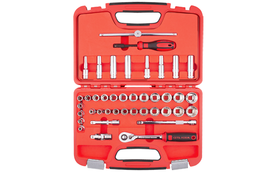 Ceta Form Socket Sets are offered in a HDPE molded case to withstand knocks, drops and variations in temperature. 41 Piece 3/8″ Drive Socket Set / Metric – SAE comprise the most popular and useful sizes of sockets with a ratchet and all the necessary accessories.