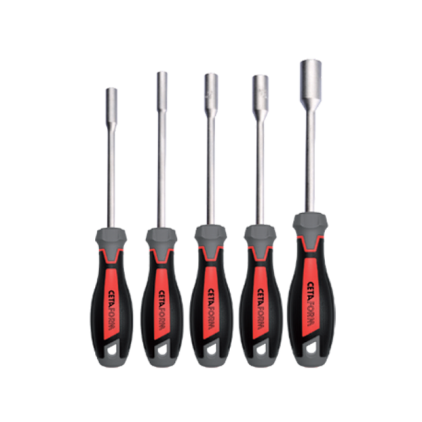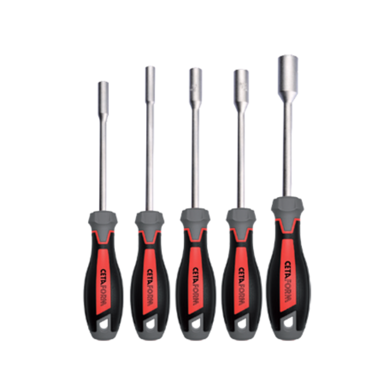Ceta Form C-Plus Screwdriver Sets in a Completely New Design! Better in every detail. Our popular C-Plus screwdriver range has undergone a major redesign process. The new handle design offers even better handling ergonomics compared to the previous version. Moreover the new 3K molding technology used in the production of these screwdrivers enable us achieve an even higher molding quality hence better haptics. Available in 4 different variants two of which are new. 5 Piece C-PLUS Nut Driver Set have precision machined tips with an XL handle to enable increaed torque combined with a slim handle section for turning with speed.