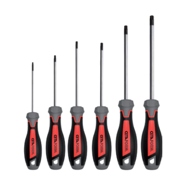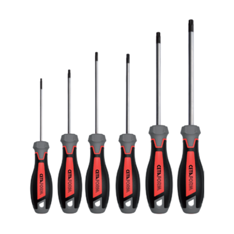 Ceta Form C-Plus Screwdriver Sets in a Completely New Design! Better in every detail. Our popular C-Plus screwdriver range has undergone a major redesign process. The new handle design offers even better handling ergonomics compared to the previous version. Moreover the new 3K molding technology used in the production of these screwdrivers enable us achieve an even higher molding quality hence better haptics. Available in 4 different variants two of which are new. 6 Piece C-PLUS Screwdriver Set – TORX have precision machined tips with an XL handle to enable increaed torque combined with a slim handle section for turning with speed.