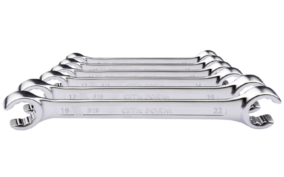 Ceta Form Wrenches. Precise, Tough and Elegant. Ceta Forn wrenches are broached to very tight tolerances. In the later stages of production, necessary efforts are given to ensure that these original tolerances are kept. Therefore either open end or ring, all wrenches tightly fit the fasteners. From open-end to ring-end, E-TORX to flare nut, metric to imperial a large range of variants are available throughout our wrenches range. You will find what you are looking for.