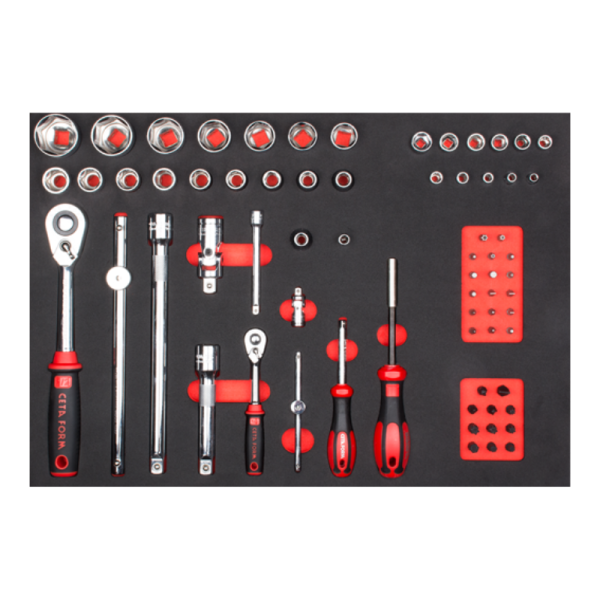 Ceta Form Tool Modules offer traceability and efficiency at its best. The 68 Piece 1/4’’+ 1/2’’ Drive 6-Point Socket Set is a very useful set of sockets featuring 2 drive sizes for many different applications.