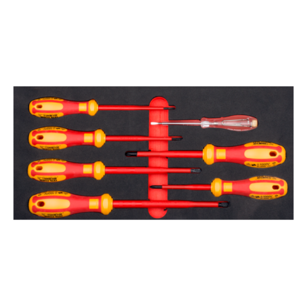 Ceta Form Tool Modules offer traceability and efficiency at its best. The 7 Piece C-PLUS 1000V Insulated Slotted/PH Screwdriver Set (VDE Approved (in EVA) is a useful addition to any electrician’s tool kit.
