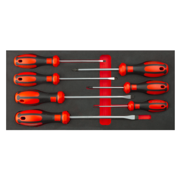 Ceta Form Tool Modules offer traceability and efficiency at its best. The 7 Piece C-PLUS Slotted/PH Screwdriver Set (in EVA) is a useful addition to any tool kit, featuring key sizes of soft-grip screwdrivers.