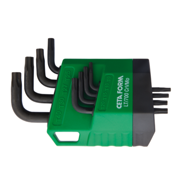 Ceta Form Hex and TORX L Keys. A comprehenisve range of hex and TORX L keys in industrial quality to suit every application. Colour coded clips for ease of selection. 8 Piece TORX L Key Set (Short Arm) are manufactured from high quality steel and meet all standards and tolerances.