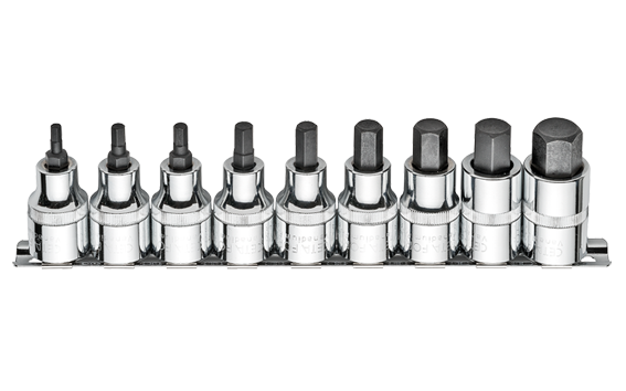 9 Piece 1/2″ Drive Hexagon Socket Bit Set – Short – SAE