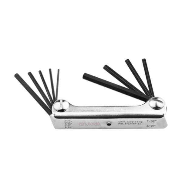 Ceta Form Hex and TORX L Keys. A comprehenisve range of hex and TORX L keys in industrial quality to suit every application. Colour coded clips for ease of selection. 9 Piece Foldup Hexagon Key Set #1 (Metal Handle) – SAE are manufactured from high quality steel and meet all standards and tolerances.