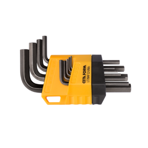 Ceta Form Hex and TORX L Keys. A comprehenisve range of hex and TORX L keys in industrial quality to suit every application. Colour coded clips for ease of selection. 9 Piece Hexagon L Key Set (Short Arm) – SAE are manufactured from high quality steel and meet all standards and tolerances.
