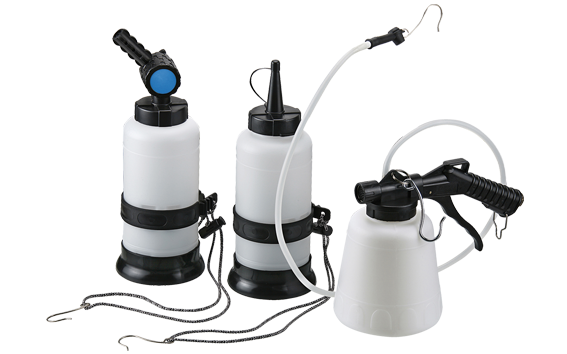 Ceta Form Brake Fluid Bleeder Set (Pneumatic) – Capacity : 0,75 – 1,0 Lt.. For the extraction of brake fluid on wheel brake cylinders / brake calipers, pneumatic, suitable for ABS brakes, supplied complete with two refill containers.