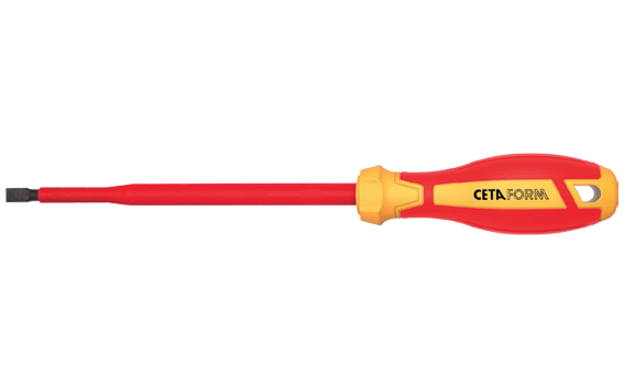 Ceta Form manufacture a broad range of 1000v insulated electrical tools including screwdrivers. C-Plus VDE screwdrivers feature precision machined fit non-peel black finish tip, dielectric Dielectric tested blade insulation directly molded onto the blade thus safeguarding against electricity. Refined ergonomic design and premium quality plastic materials for a comfortable grip. 2K Handle technology for high torque transmission with less stress. Every tool is individually tested in a water bath at 10.000 Volts according to DIN EN 60900, IEC 900 norms. Ceta Form C-Plus Soft-Grip 1000v Phillips Screwdrivers (VDE). For safe working on live electrical applications up to 1000v AC and 1500v DC. EN 60900, VDE 0682 Teil 201, DIN ISO 8764