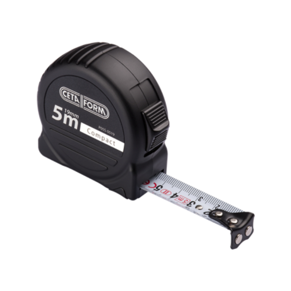 Ceta Form Compact Tape Measures (Magnetic Hook). Blade accuracy to EC class II. Designed to have the smallest housing in class for easy handling. Unique double stop mechanism. Strong magnetic hook.