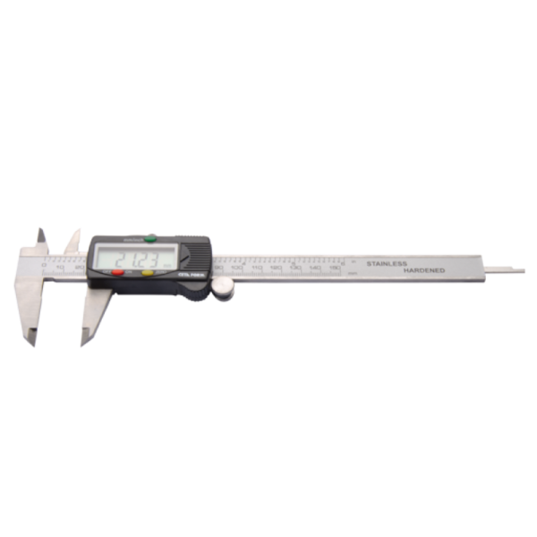 Ceta Form Digital Vernier Caliper – (150 mm -6″). Metric and imperial reading, large display reading 0.01 mm and 0.0005”, zero setting control, depth gauge, stainless steel body, 1xSR44 battery (included), supplied in plastic case.