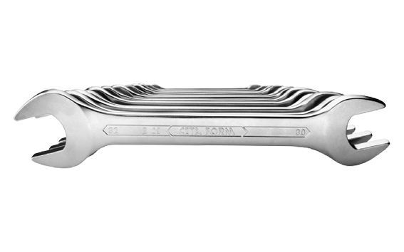 Ceta Form Wrenches. Precise, Tough and Elegant, suitable for use in a wide range of applications. Double Open End Wrench Sets – Long Type (in Carton Box) are produced to very high standards and tolerances, and finished with high quality chrome plating.