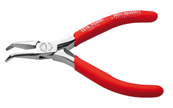 Ceta Form offer a broad range of precision tools, called C-Tronic. Ideal tools for working in the electronics industry and other precise tasks. Ceta Form C-TRONIC Electronics Bent Needle Nose Pliers- 115 mm. Box joint construction. Hot drop forged, hardened and tempered quality stainless steel. Induction hardened, precision milled cutting edges. Welded sheet steel spring mechanism, dipped handle. Serrated gripping jaws, box-joint design