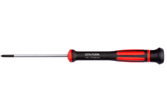 Ceta Form offer a broad range of precision tools, called C-Tronic. Ideal tools for working in the electronics industry and other precise tasks. Ceta Form Electronics Pozidriv ScrewdriversPrecision machined tip. Ultra-slim grip enables fast twisting and finger-tip accuracy. Minimum friction with free-rotating cap. DIN ISO 8764-1, TS 59-5