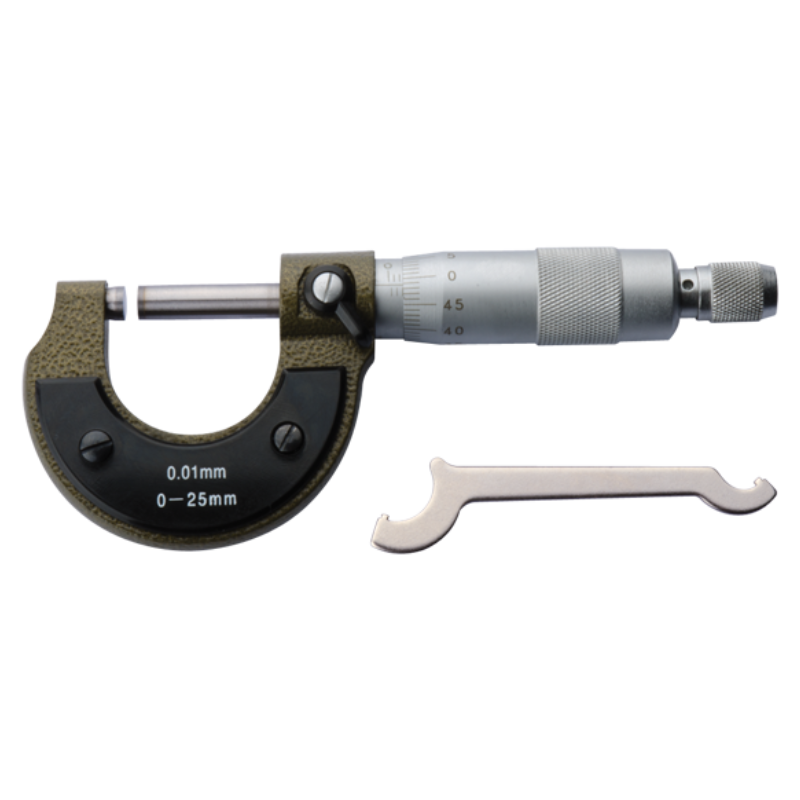 Ceta Form External Micrometers. 0.01 mm graduations, clamping ring and ratchet stop, carbide tipped anvils, heat plates, supplied in plastic case.