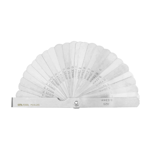 Ceta Form presents a comprehensive range of measuring tools including tape measures, verniers, micrometers and levels. Ceta Form Feeler Gauge (SAE) – 25 Leaf (0.0015-0.025). 100 mm long tapered blades, hardened and polished, steel case with thumbscrew.