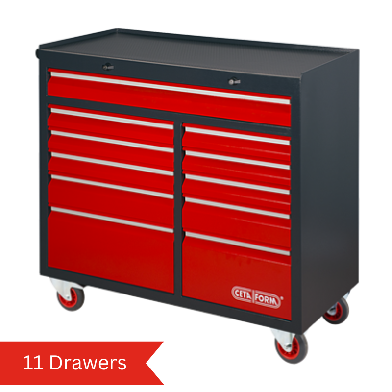 Ceta Form Tool Cabinets are very high quality, manufactured using heavy gauge steel and scratch-proof mat powder coating. GT-Plus Jumbo XL Roller Cabinets are our premium range of tool cabinets with 11 drawers, for extensive storage. Features include an individual draw lock system to prevent unintential opening and a choice of 2 worktops. GT-Plus Jumbo XL Roller Cabinets accommodate 3 foam system modules in the left column of drawers and 2 foam system modules in the right column of drawers.