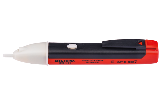 Ceta Form Voltage Testers. Maximum safety in an ergonomic design. Ceta Form Non-Contact AC Voltage Detector – max. 1000V. The coltage tester for finding live supply without contact. For 90V – 1000V AC, aural and visual notifications, CAT II insulation, 2 x 1.5 V. AAA batteries, 6 hours of battery time.