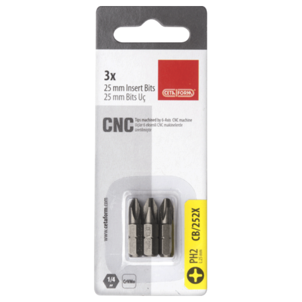 Ceta Form Ceta Form Bits and Accessories. A complete range of industrial quality screwdriver bits. Save time and money by utilising Ceta Form high-performance driver bits. Phillips Bits (Display Packed) are available in key sizes with bit holders to match. Sets available for the most common sizes of bits.