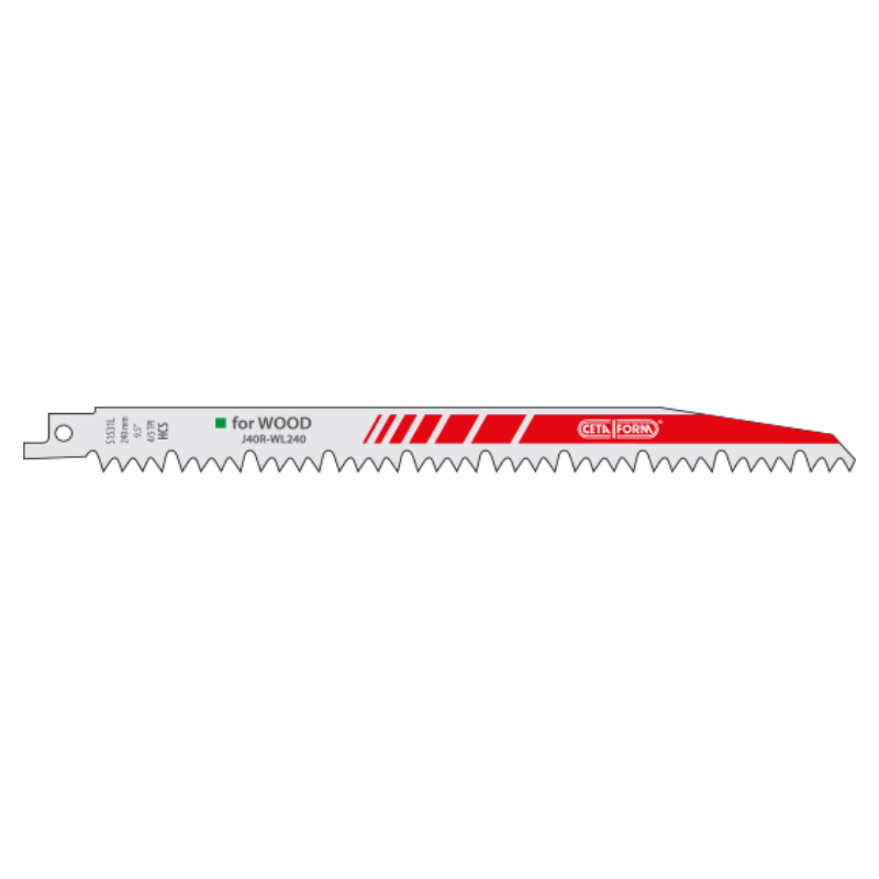 Ceta Form presents a complete range of HSS reciprocating saw blades and jigsaw blades. Ceta Form Reciprocating Saw Blade (for Wood) – 5 Pieces (S1531L). For hard wood, knotless wood, tree pruning, 4/5 TPI teeth, HCS body.