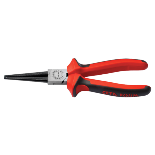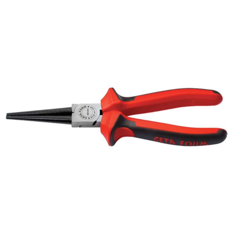 Ceta Form, the expert pliers manufacturer, precisely satisfies the expectations of most demanding customers. Any professional user will recognise the difference from the outset. Ceta Form pliers feature fine teeth for holding small objects, larger teeth for holding circular objects i.e. screws, pipes etc., high performance cutting edges, extra hardened by special Ceta Form induction process, wobble free rivet joint, safety guards to prevent fingers from slipping during riskier tasks and plastic components resistant to all petroleum products. Round Nose Pliers (Polished Finish/DuoTech Handles) feature a polished finish with PVC handles. DIN / TS ISO 5745. For bending wire loops.