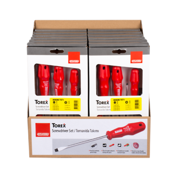 Ceta Form Torex Screwdriver Sets. The Classic screwdriver series from Ceta Form has been revised with a new ergonomic handle. Available in a wide range of sets. TOREX Screwdriver Set Display Packs feature precision machined ultimate fit non-peel black finish, precision hardened chrome-vanadium-molybdenum steel blades with a refined ergonomic handle design and premium quality plastic materials for a comfortable grip.