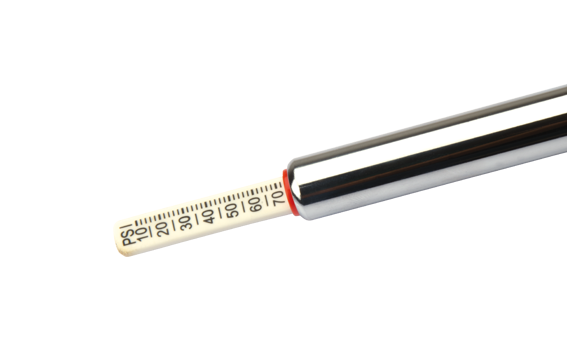 Ceta Form Tyre Pressure Gauge (for Cars) – 135 mm Capacity: 10 – 120 psi. Pen type, psi scale, features valve deflator and pocket clip, steel body (chrome finish).